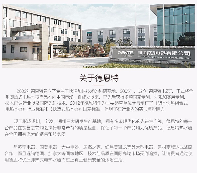 德恩特品牌旗下涵蓋即熱式電熱水器,速熱式電熱水器,快熱式電熱水器品牌和凈水機等